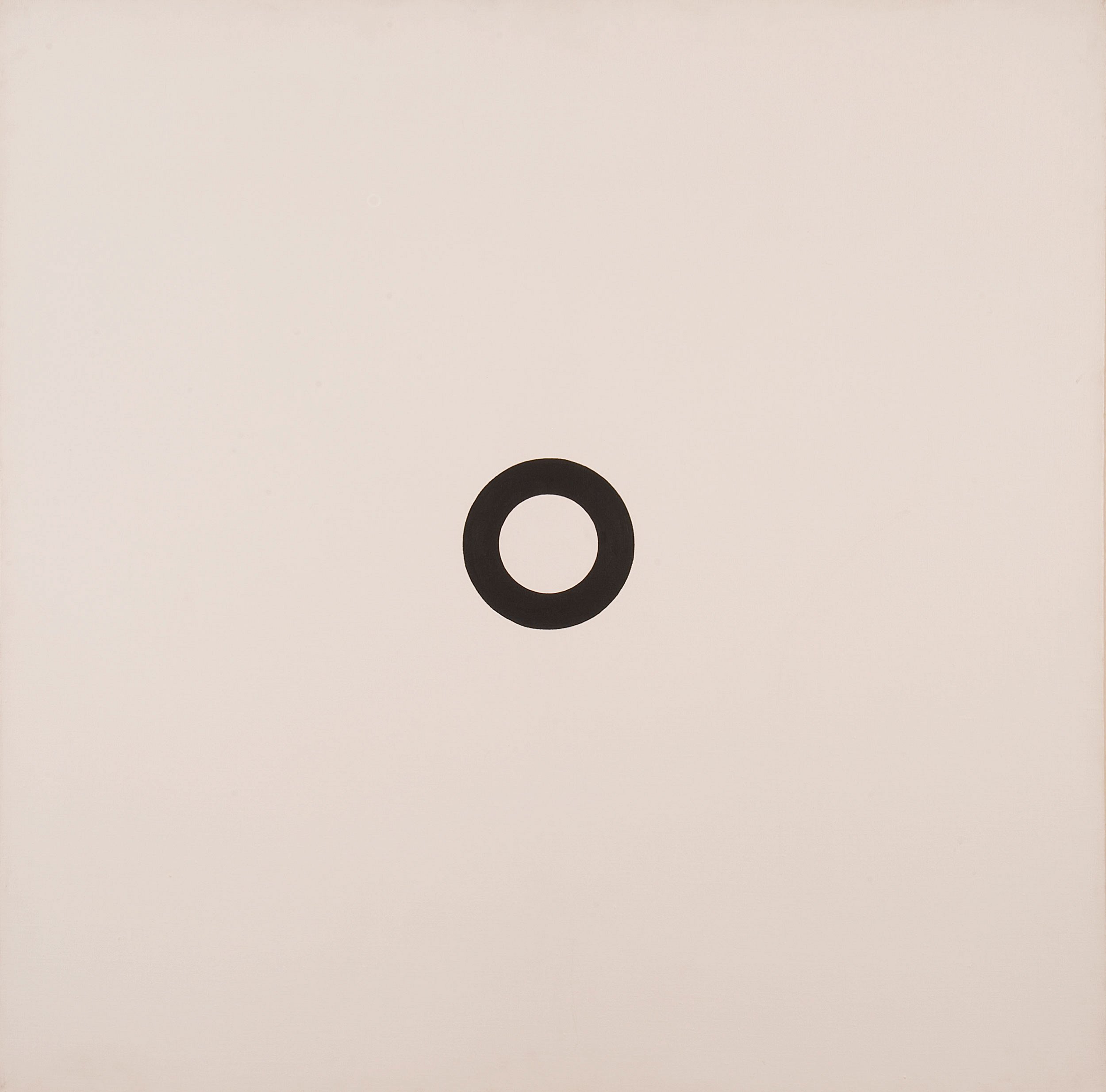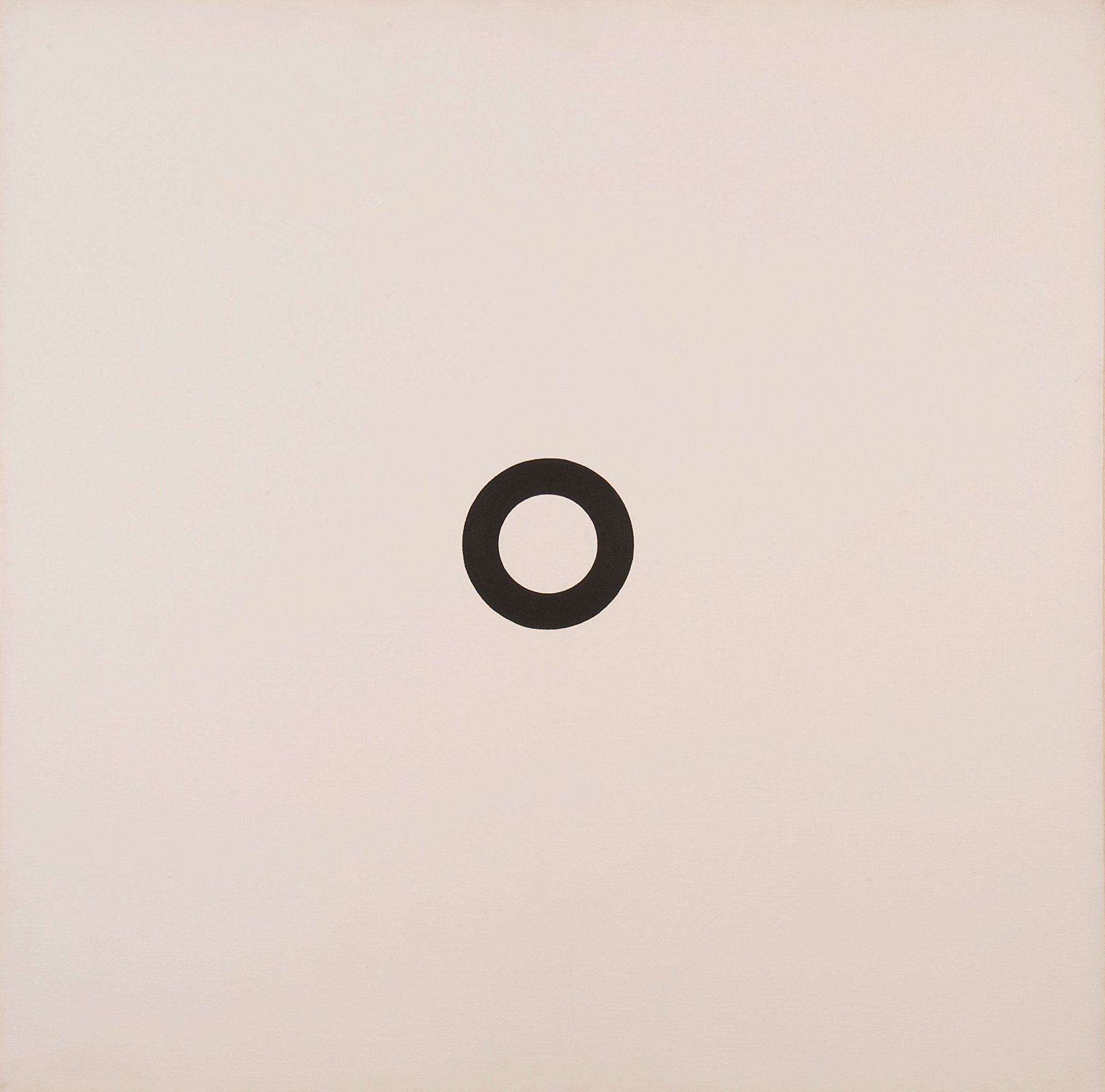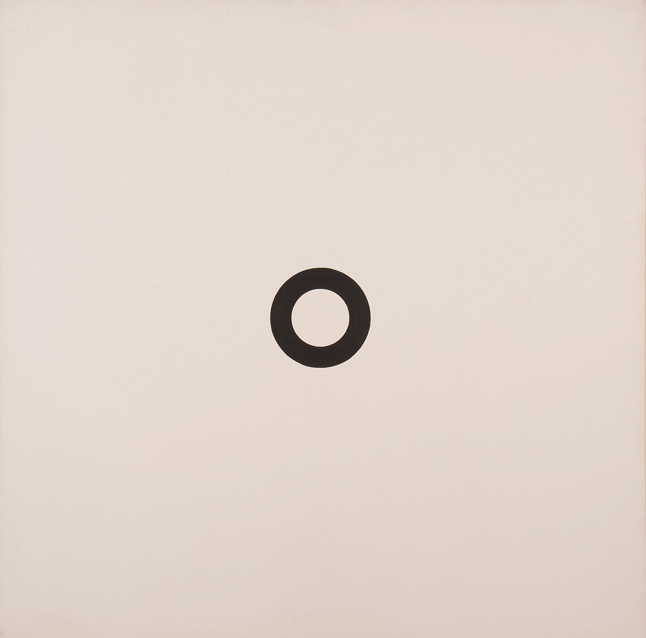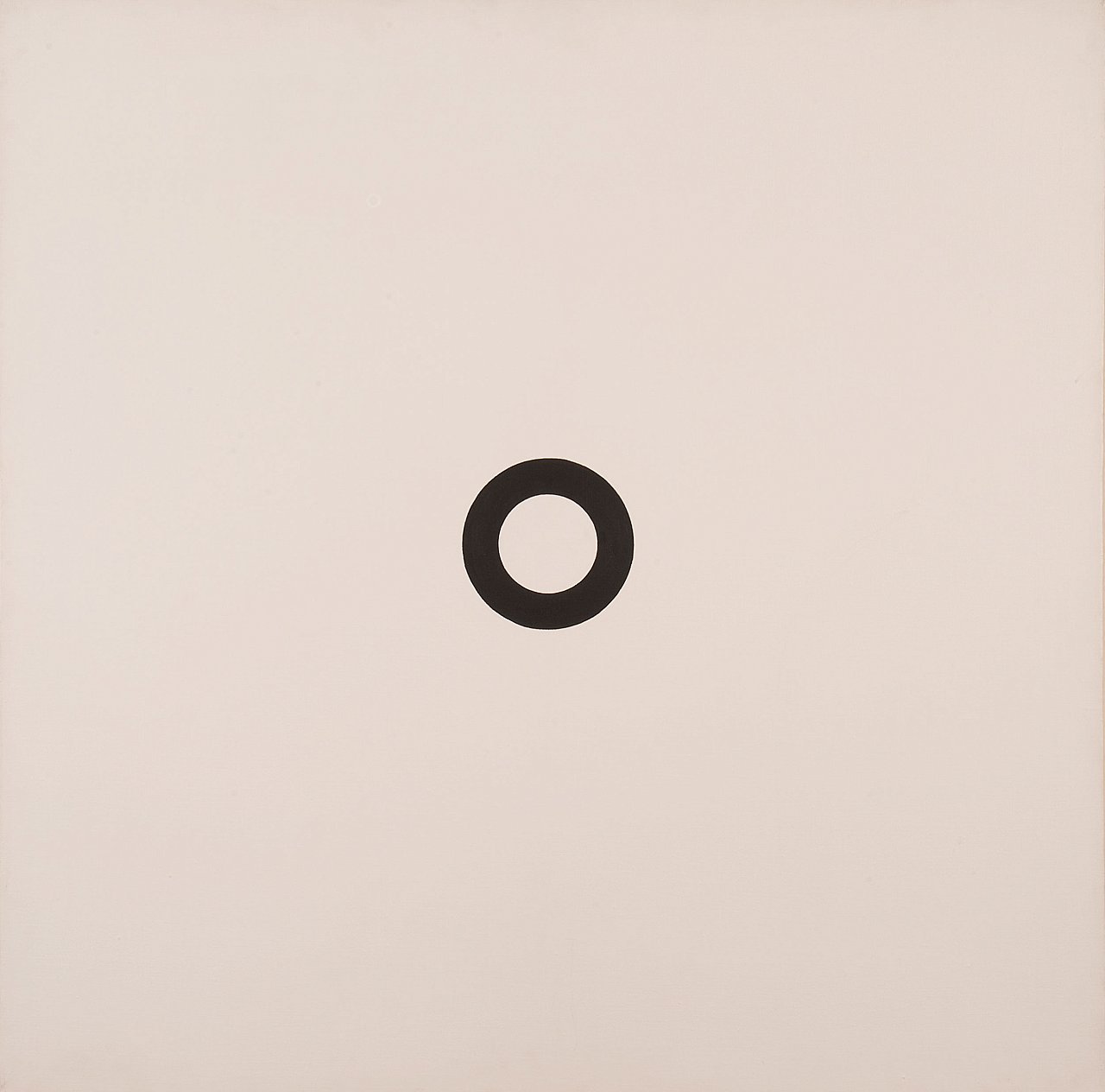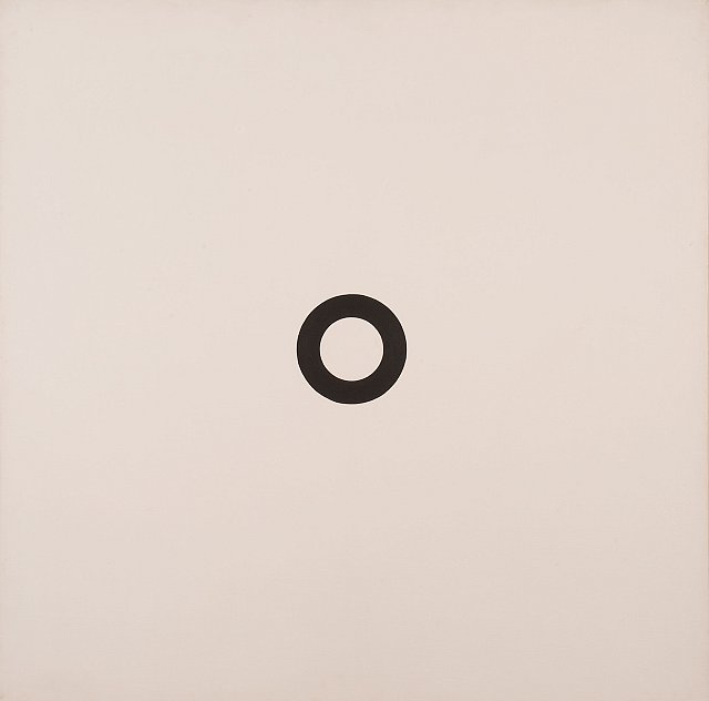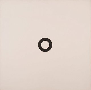 Olivier Mosset’s work represents a black circle 15.5cm in diameter and 3.25cm wide on a white square canvas. The repetition and the multiplication of this motif minimal allow the artist to free himself from the constraint of the single work of art. This approach thus refers to the mechanical character of the act of painting, claimed by the artists of the BMPT movement. For eight years he repeated automatically and insensitively this circle, for the artist, a good painting must be abstract, to avoid all illusionism and psychological content : « what counts is to make painting and that this painting functions as painting ».