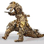 The Monster is made by compiling and assembling found objects, around an iron structure. Here plastic toys dominate and compose the work. Some of them, melted, are no longer recognizable. This link to childhood contrasts with the figure of this threatening hybrid armed with a fake knife. The tension of the work lies in the opposition between the objects and materials used, which evoke innocence and carefreeness, and the frightening composite figure, which refers to the incest that the artist suffered during her adolescence and about which she did not speak until she was 64 years old in her book Mon Secret. The theme of the monster and the interest in everything that is « disturbingly strange » populate the artist’s work. A few years later, she produced Le Monstre de Soisy in collaboration with Martial Raysse and her husband Jean Tinguely.