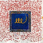 Dans Bop, op, pop, punk, l’artiste privilégie le diptyque. Les toiles sont construites à l’identique avec une alternance de carrés et de coups de brosses colorés, créant une opposition entre l’ordre et le chaos, les formes géométriques lisses et les coulures. Au centre, deux motifs énigmatiques se détachent avec force d’un fond monochrome. Les deux peintures se répondent et entrent en résonnance, notamment grâce aux jeux de couleurs. A la recherche d’un langage pictural, Pat Steir semble se tourner vers un art plus « artisanal », plus « primitif » aux motifs empruntés à la préhistoire, à l’art oriental, tibétain ou amérindien. Ces inscriptions « mystérieuses aux connotations magiques, talismaniques, confèrent au tableau une singulière puissance mystique » (Douglas James Johnson, artiste peintre américain).