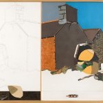 Begun in 1974, Télémaque’s highly personal collages are made of coloured paper and studio scraps. Two major series, the Saddles and the Rural Houses, which occupied him particularly in the 1980s, are regularly associated with their preparatory drawings. Like other artists of the Figuration Narrative, he uses the episcope to project images onto the canvas and trace their outlines.