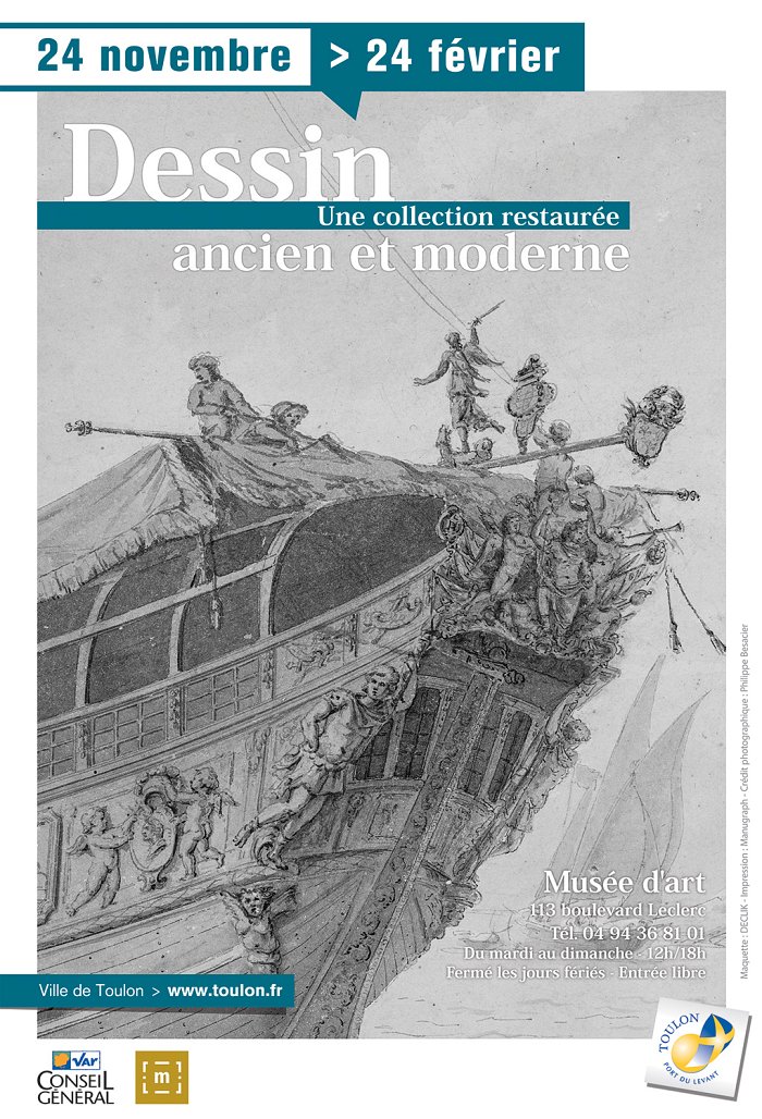 Temporary thematic exhibitions organised with the cooperation of contemporary artists, museum loans or private collectors, are developed under the direction of Brigitte Gaillard, the curator of the Toulon museums, in close collaboration with the museum’s collection in order to ensure thematic coherence and regular rotation of the collections despite the absence of a permanent exhibition room.