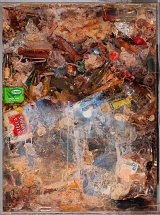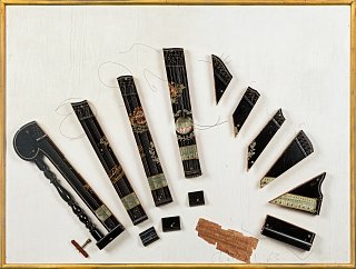 Musical instruments are among the objects most used by the artist for the conception of his works. The artist who defines himself as a « showman of objects » offers us here a decomposition of a zither that reveals the different materials that compose the instrument. In 2002-2003, Arman returned to easel painting in Serious Paintings, combining the recomposition of musical instruments with their « staging » in painting.