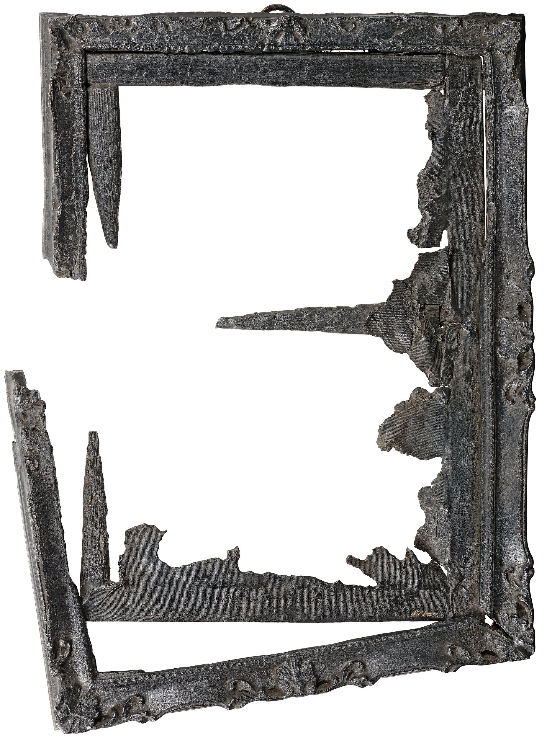 The work Painting belongs to a series of eight other productions. The charred frame of a painting from Combustions, then cast in bronze, expresses his desire to annihilate the object’s primary function. Through his gestural and destructive practice, which could be likened to a real performance, Arman gives a new dimension to the sometimes overly sacred objects of our daily lives.