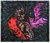 He claims his taste for the comic strip, the rock, the films of series B and series Z as well as for the Science-Fiction. He paints in bright colors a world teeming with recurring heroes and superheroes, a personal mythology full of vitality, violence, anguish and humor.