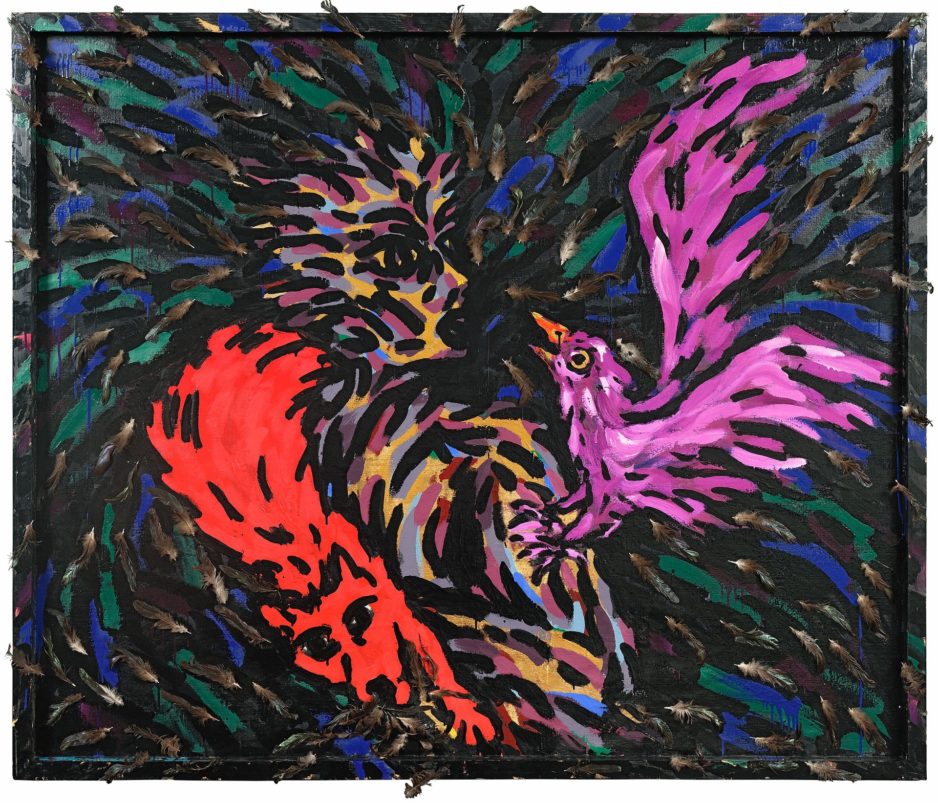 Acrilico su tela, piume e legno 182 x 154 cm Acquistato con l’aiuto del FRAM, 1982
