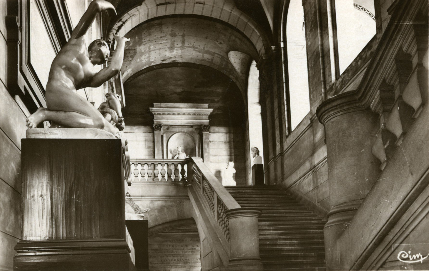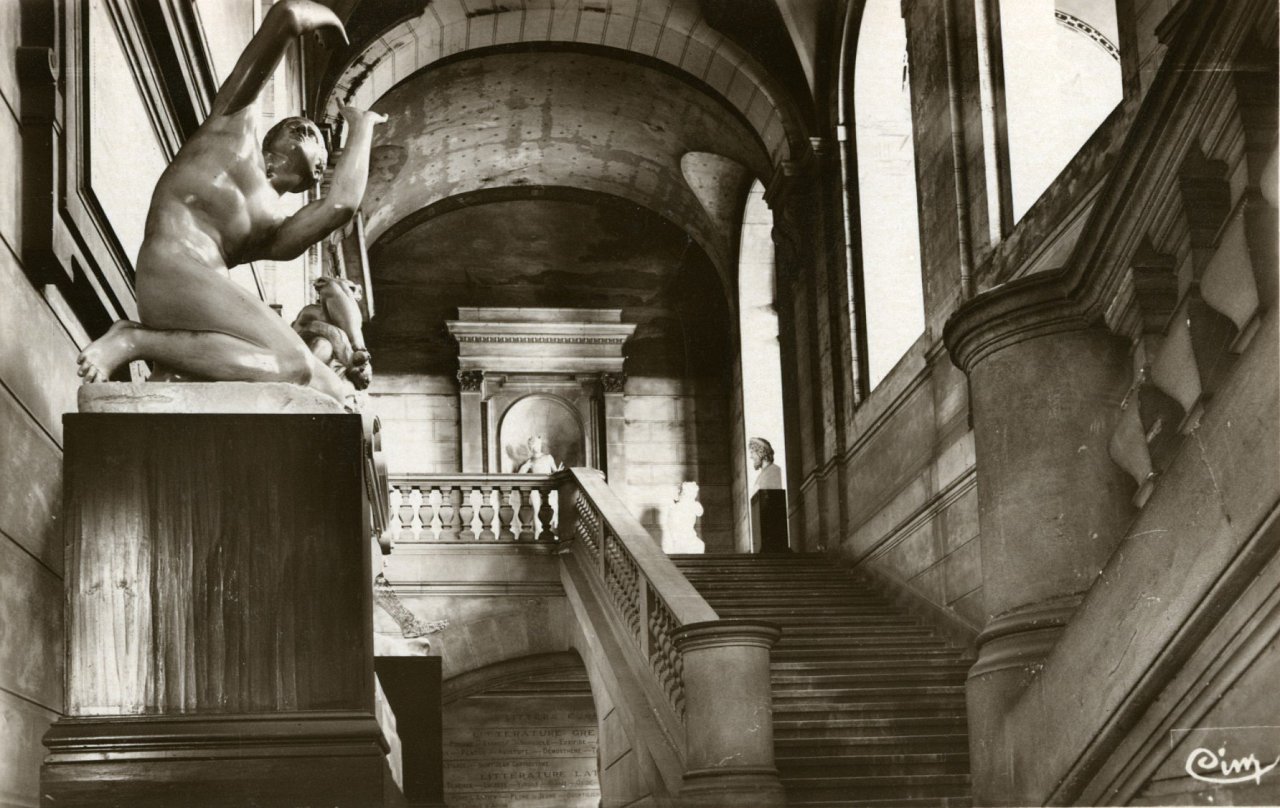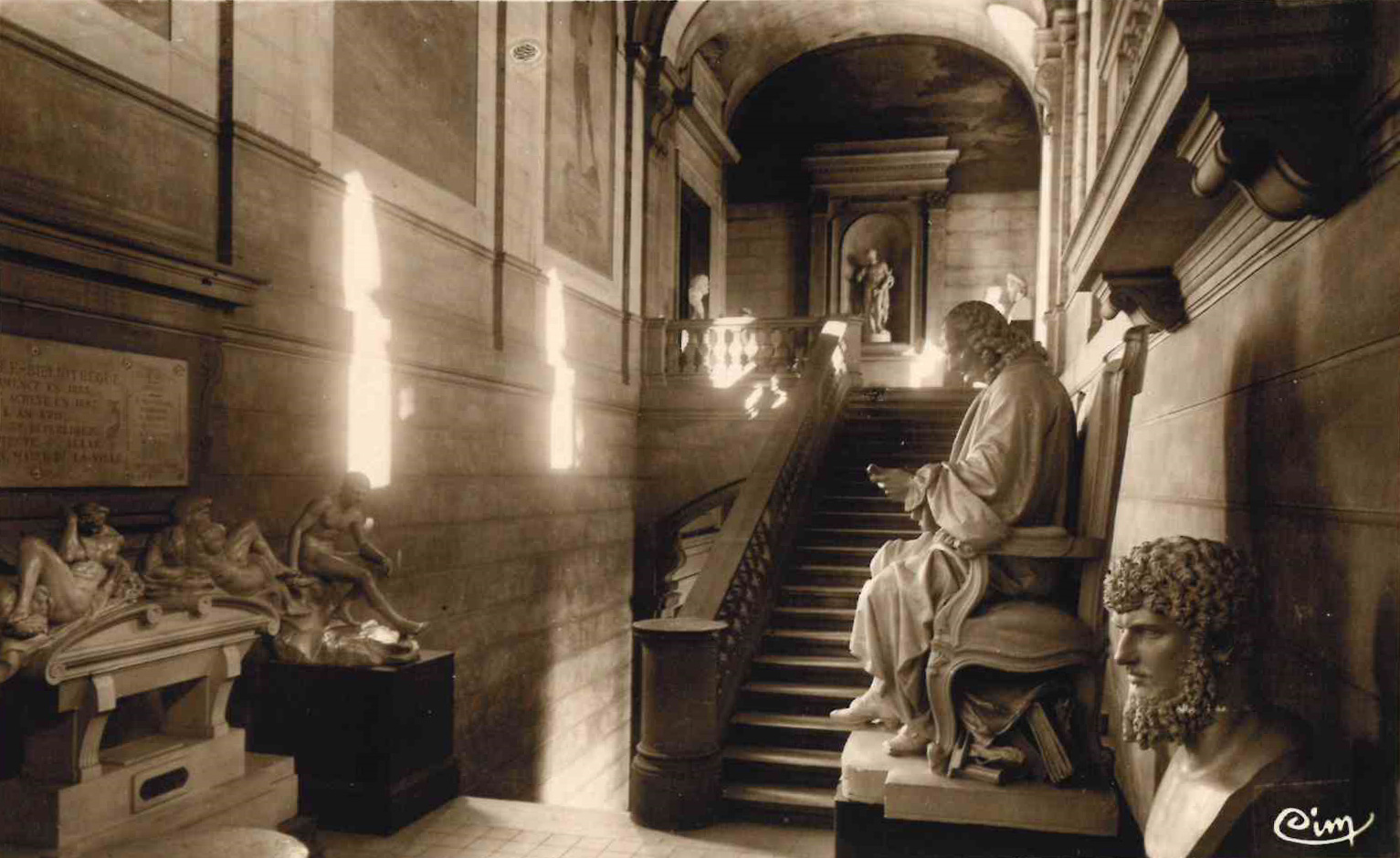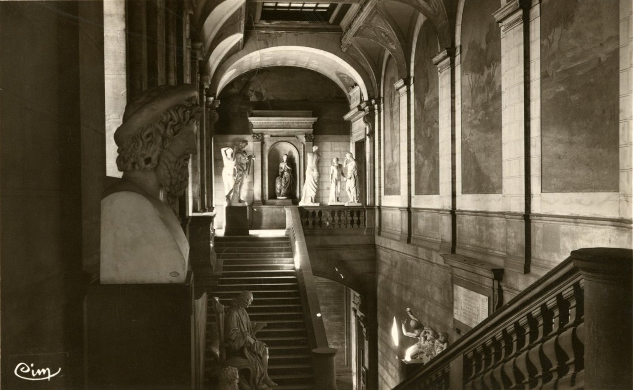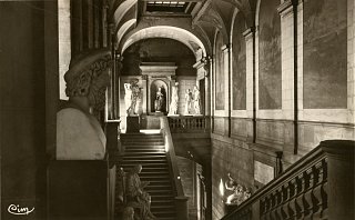 Inside, the stairs have also been decorated with sculptures placed in niches, as well as large decorative paintings illustrating harsh scenes (The harvest by O. Gallian, The olive harvest by F. Montenard, The merchant port in Toulon by E. Dolphin) and portraits of artists (Portrait of Felix Brun by A. Laugier).