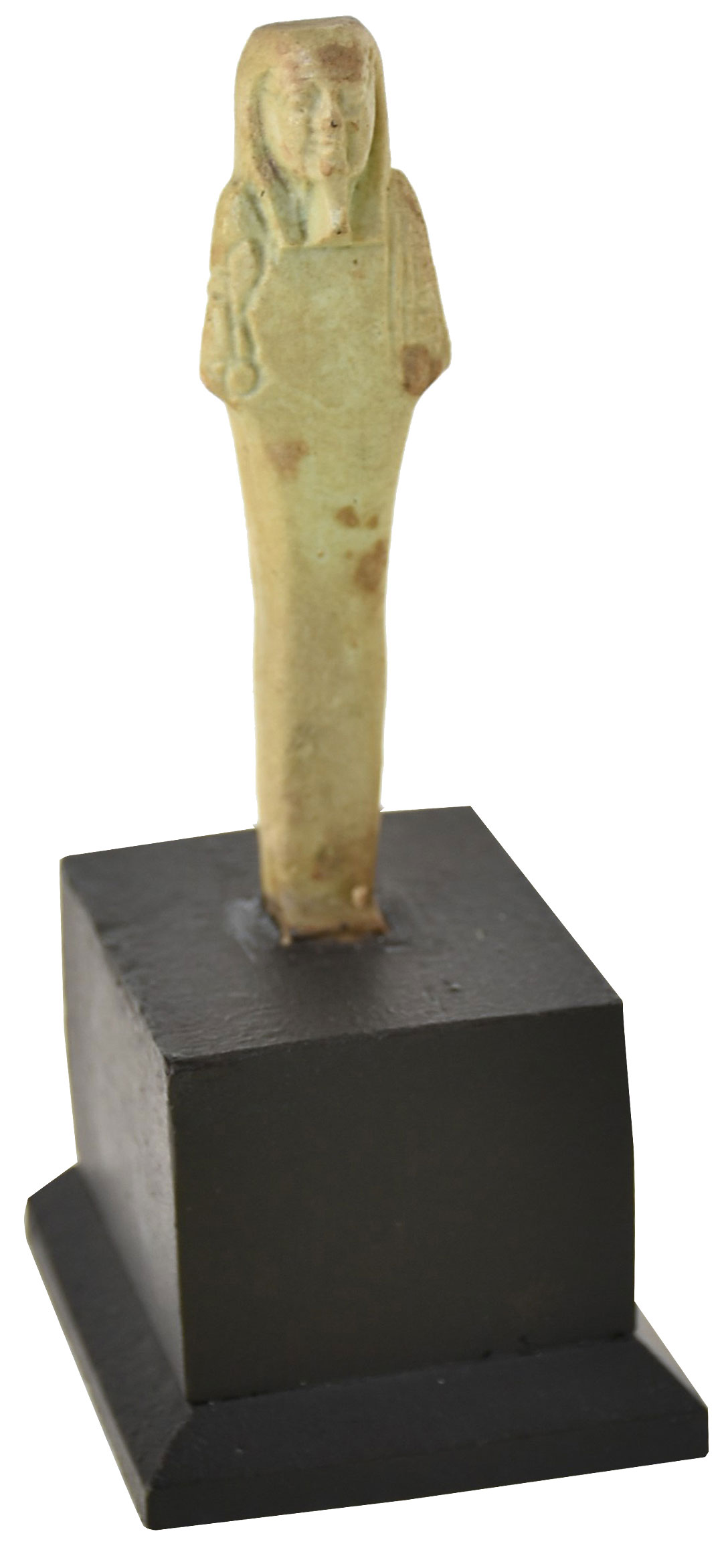 The crude workmanship of the inscriptions suggests a provincial production, an attempt to copy the royal productions of the Old Kingdom. However, the rounded headdress, the almond-shaped eyes and the beard are characteristic of an Asian production inspired by Egyptian art (Hyksos or people of the Near East).*